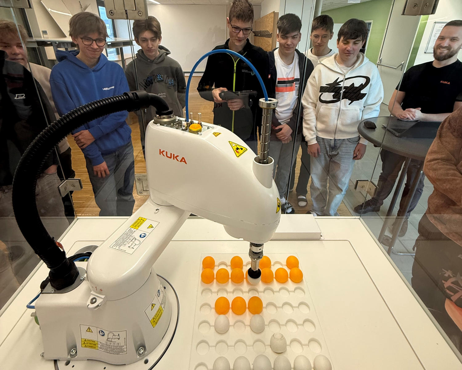 Am 23. Februar 2026 war im Ausbildungsschwerpunkt Robotik und Smart Engineering der HTL Ried im Innkreis das Unternehmen KUKA im Rahmen der Initiative "Maschine des Monats" zu Gast.